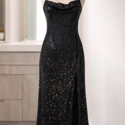 black sequined maxi dress by Jump Apparel, featuring a cowl neck, spaghetti straps. Size M.$30Alexandria, VA