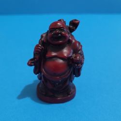 Vintage Red Buddha Statue Resin Laughing Lucky Small 2.5" .