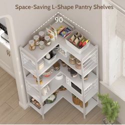 Y76🔥5 Tier Corner Bookshelf, Reversible Corner Shelf, Industrial Wooden Display Book Shelf Stand, L-Shaped Etagere Bookcase with Storage Shelves and $90Columbia, MD