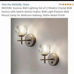 MASIVEL Sconces Wall Lighting Set of 2 Modern Crystal Wall Sconce with Switch Button Indoor Wall Light Fixtures Wall Mount Lamp for Bedroom Hallway, M$70Baltimore, MD