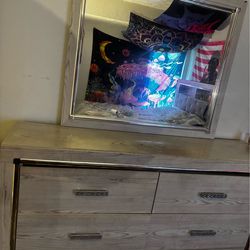 Modern Gray 6 Drawer Dresser with Mirror – Glam Silver Trim$150Greenbelt, MD