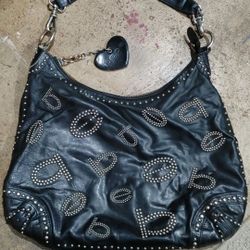 Vtg Y2K Bebe Black Studs Logo Hobo Shoulder Bag Handbag Heart Charm Purse$30Baltimore, MD