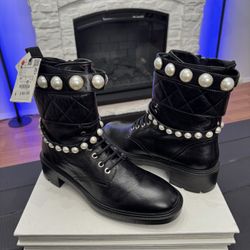 Zara black leather combat boots with faux pearl details. Size 9 (40). Retail $149. Brand new with tags. $45Washington, DC