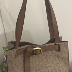 Calvin Klein-CK Large Brown Monogram Tied Belt Tote, Gold Hardware & Zipper Pouch.$59Owings Mills, MD