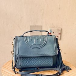 Preloved Authentic Tory Burch Light Sea Blue Fleming Satchel Shoulder Bag $299Hyattsville, MD