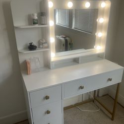 White Vanity Desk w/ Lighted Mirror – Gold Accent$180Baltimore, MD