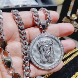 Stainless Steel Jesus Christ Coin Necklace $48Essex, MD