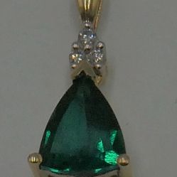 10KT YELLOW GOLD PENDANT W 3 SMALL DIAMONDS & GREEN STONE 1.4 GRAMS MINT CONDITION. . 862360-1. $89Baltimore, MD