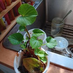 Alocasia plant with bright red ceramic pot$35Baltimore, MD