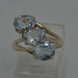 10KT YELLOW GOLD RING 3.5 GRAMS SIZE 7 WITH 3 LIGHT BLUE STONES MINT .867957-1.$199Baltimore, MD