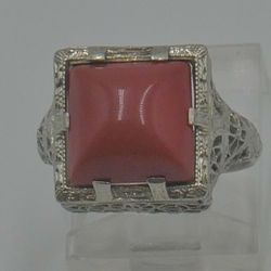 14kt white gold filigree ring with princess cut coral stone 3 grams size 4.5 . mint condition. 862556-3$299Baltimore, MD