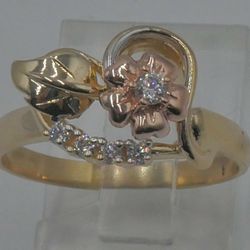 14KT TWO TONE YELLOW AND ROSE GOLD FLOWER DESIGN RING SIZE 8.5 3.8 GRAMS W CZ. 860756-1. $239Baltimore, MD