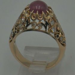 14KT GOLD RING CABOCHON RED STONE AND DIAMONDS SIZE 6.5 10.9 GRAMS VERY GOOD$549Baltimore, MD