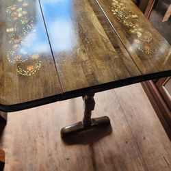 Vintage Old Tavern Pine End/Side Dropside Table With Floral Top. Sturdy and in Great Condition. 2' Long X 10 1/2" Wide X 23 1/2" High. Sides Up: 23" W$95Chelsea, ME
