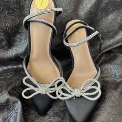 BCBGeneration Bows Black Satin Rhinestones Pump Heels Sz 7$80Bemidji, MN
