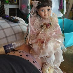 Vintage Porcelain Doll On Wooden Swing$100Innsbrook, MO