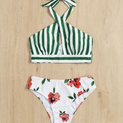 Womens Medium Flowery Striped Green Red White Bikini Set $8Hillsboro, MO