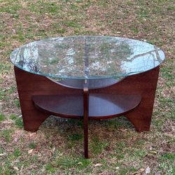Round Wood And Glass Coffee Table With Shelves$150Chapel Hill, NC
