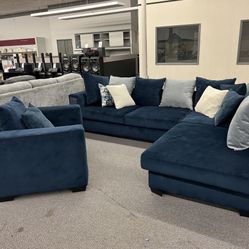 NEW FLAVOR ALERT! Brand New Plush Royal BLUE Thick Corduroy RAF 2pc Corner Sectional & Ott Sets$850Willow Spring, NC