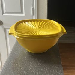 Tupperware Servalier Vintage Yellow Square Bowl With Lid Sunburst Design$12Morrisville, NC