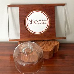 Vintage 70s Mid Century Lucite And Glass Dome Good Wood Teak Cheese Board Serving Tray$35Chapel Hill, NC