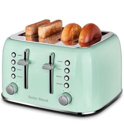 Roter Mond 4 Slice Retro Stainless Steel Toaster with Extra Wide Slots, Aqua Green $50Cary, NC