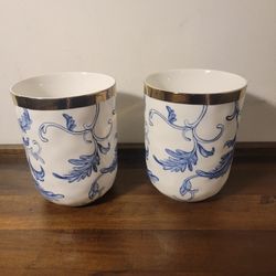 Two blue and white ceramic containers with gold trim$10Garner, NC