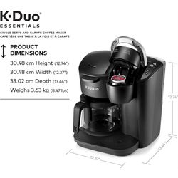 Keurig (contact info removed)976 K-Duo Essentials 2-in-1 Coffee Maker for K-Cup Pods/12-Cup Carafe $100Raleigh, NC