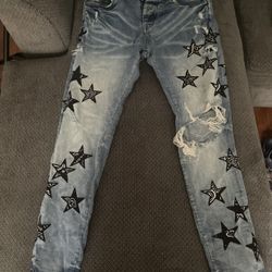 Amexnocap Gradient Lightning Patch Leather Straight Jeans $138Durham, NC