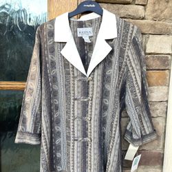 NTW Reina New York Womens Gray Floral Button Front 3/4 Sleeve Blouse Sze 14P$19Cary, NC