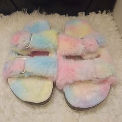 Wonder Nation Two-Buckle Faux Fur Footbed Tie-Dye Slippers Size 5-6$10Garner, NC