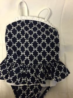 NWT Janie And Jack Bathing Suit Swimsuit 12-18mo Navy Blue And White Bow Ruffles$20Raleigh, NC