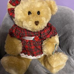 Stuffable Stuffies Golden Brown Bear with plaid christmas bow and dress $40Durham, NC
