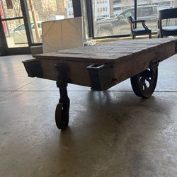 Vintage Industrial Factory Cart Coffee Table Antique Wood and Cast Iron Wheels – A.B. Farquhar$275Raleigh, NC