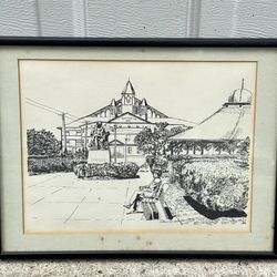 Framed Architectural Illustration Drawing By Arthur Evans Wall Art Decor$35Chapel Hill, NC