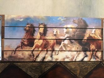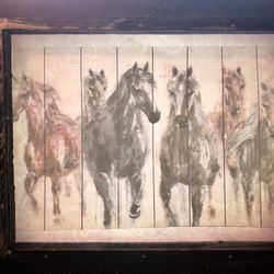 Beautiful print of horses in a frame on a wooden plaque$50Durham, NC