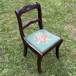 Antique Victorian Style Mahogany Carved Wood Floral Needlepoint Seat Childs Accent Chair$70Chapel Hill, NC