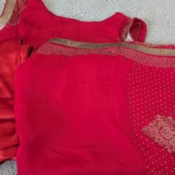 Red Saree, Blouse, Satin Petticoat Set Gold Studs$65Morrisville, NC