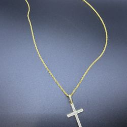 Rope Chain And Moissanite Cross 925 Silver Gold Plated $150Mebane, NC