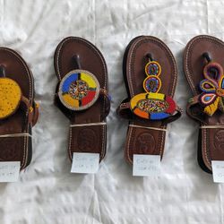 African Maasai Women Female Genuine Leather Beaded Flip-Flop Sandals BOHO$36Morrisville, NC