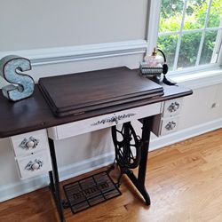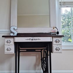 Stunning Custom Painted Antique Singer Sewing Machine Table Repurposed Into Make-up Vanity $1,200Raleigh, NC