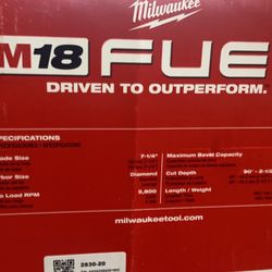 Milwaukee M18 FUEL 18-Volt Lithium-Ion Cordless 7-1/4 in. Rear Handle Circular Saw (Tool-Only) Solo herramienta$250Raleigh, NC