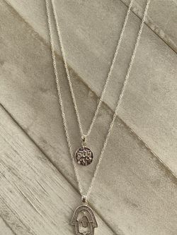 Beautiful Silver Double Lotus Flower and Hand of Fatima Necklace$40Raleigh, NC