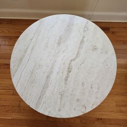 Drum shaped Marble top accent table with bronze polished metal base. $65Durham, NC