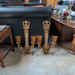 2 Vtg 1969 Syroco Homco Gold Toned Candle Holder Wall Sconces Made In USA$60Center, ND