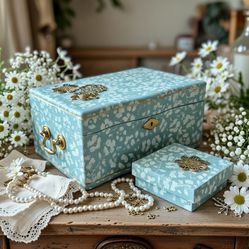Cottagecore Jewelry Box Vintage Upcycled Duck Egg Green Floral Stencil Removable Tray Purple Lined with Coordinating Trinket Box$65Laconia, NH
