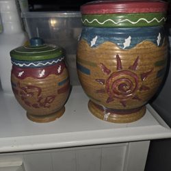 Vintage Pair Of Southwestern Aztec Style Ceramic Kitchen Canisters$30Hillsboro, NH