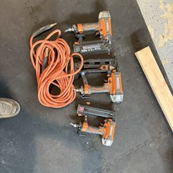 Rigid 18 Gauge Nail Gun, 16 Gauge, And 18 Gauge Narrow crown Stapler and 25ft Air Hose$200Toms River, NJ
