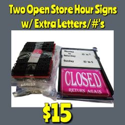 2 Open Store Hour Signs w/ Extra Letters & Numbers$15Burlington, NJ