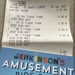 Jenkinsons & Casino Pier Boardwalk Tickets$500Tinton Falls, NJ
